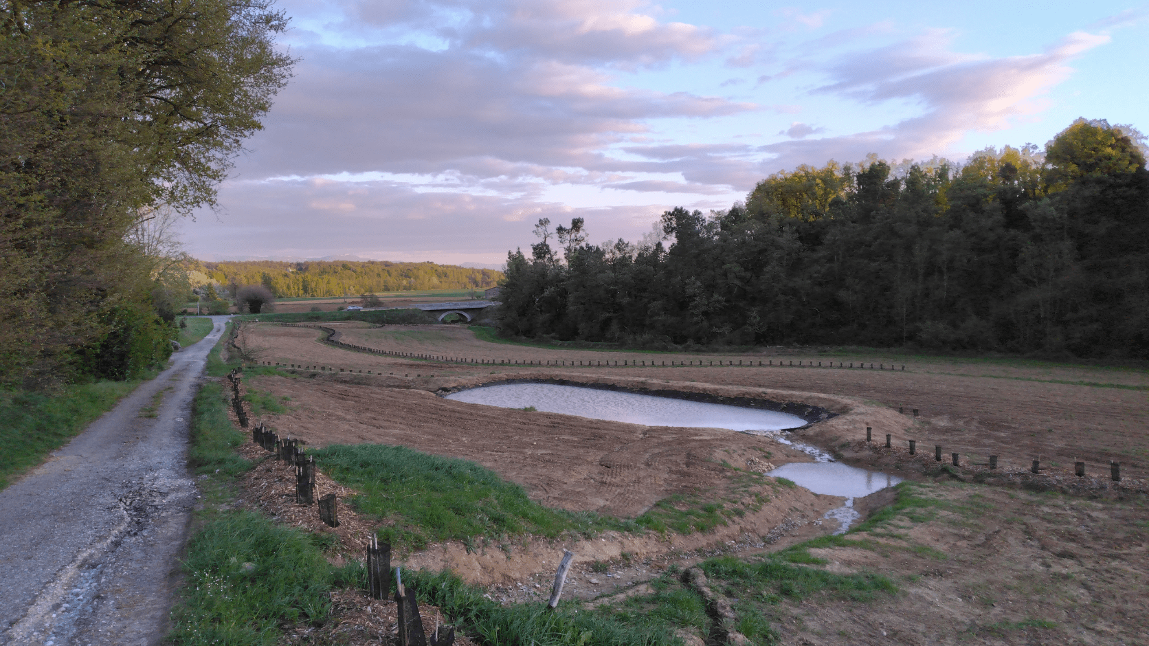 L’aménagement intègre également des travaux d’hydrologie régénérative : baissières et mares destinées à ralentir et infiltrer l’eau, pour limiter l’érosion et améliorer la disponibilité hydrique en période sèche.